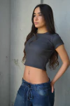 Remera corte baby tee, manga corta de de morley algodón, calce regular y cuello redondo.