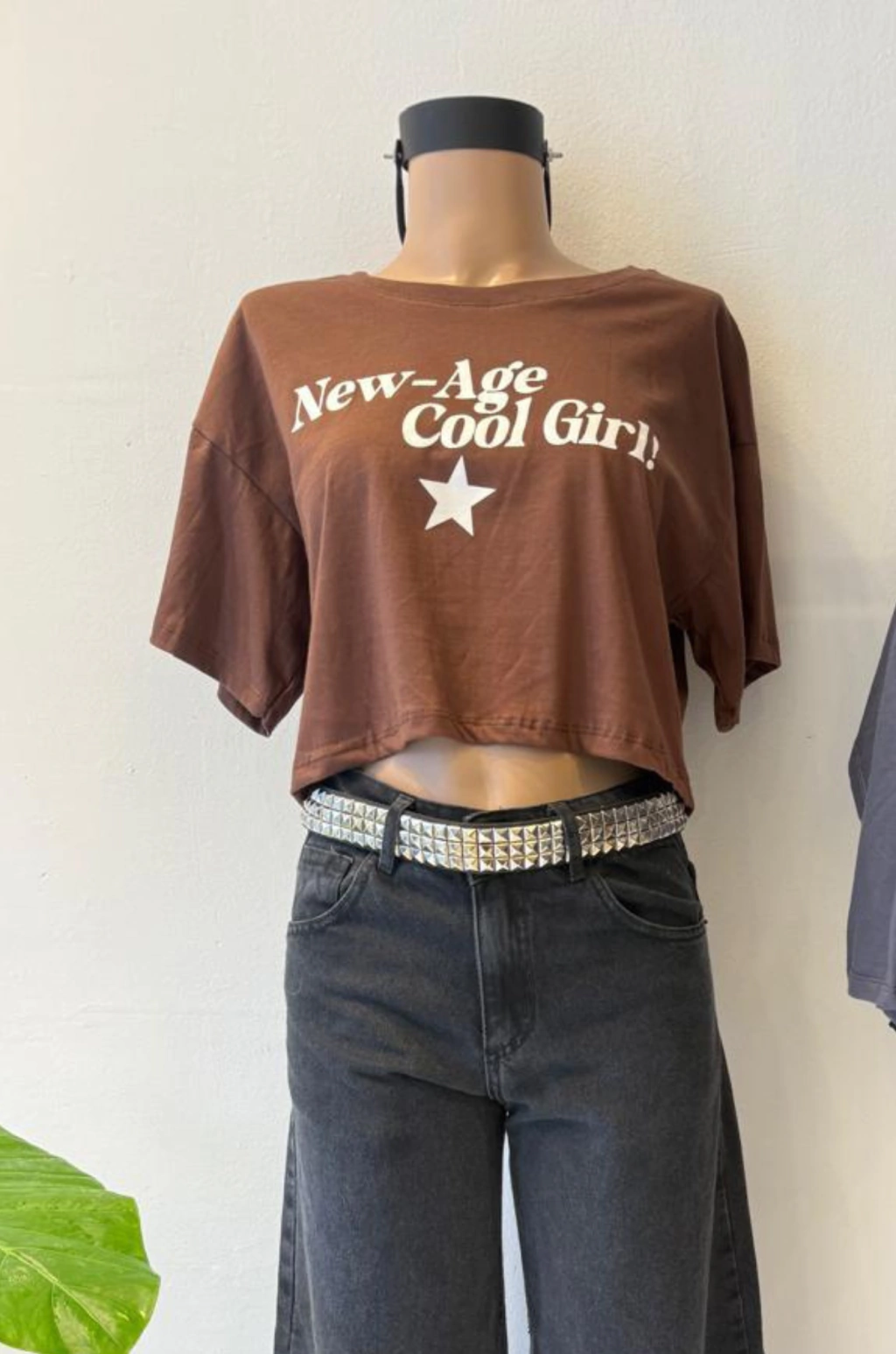 Remera manga corta de jersey algodón premium corte boxy, con cuello redondo aplicado de ribb. Estampada en el frente.
