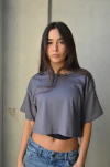 Remera manga corta de jersey algodón premium corte boxy, con cuello redondo aplicado de ribb.